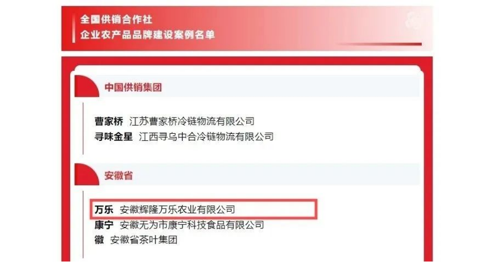 “萬(wàn)樂(lè)”品牌成功入選供銷(xiāo)合作社企業(yè)農(nóng)產(chǎn)品品牌建設(shè)案例名單